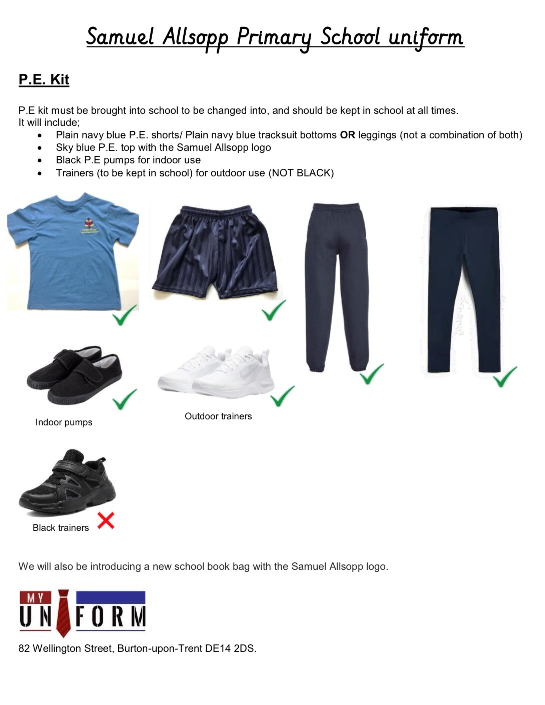 All uniform and bags can be purchased from https://myuniformltd.co.uk/ either by visiting their shop on Wellington Street, Burton upon Trent or online who supply all our school uniform, PE kits and school bags.